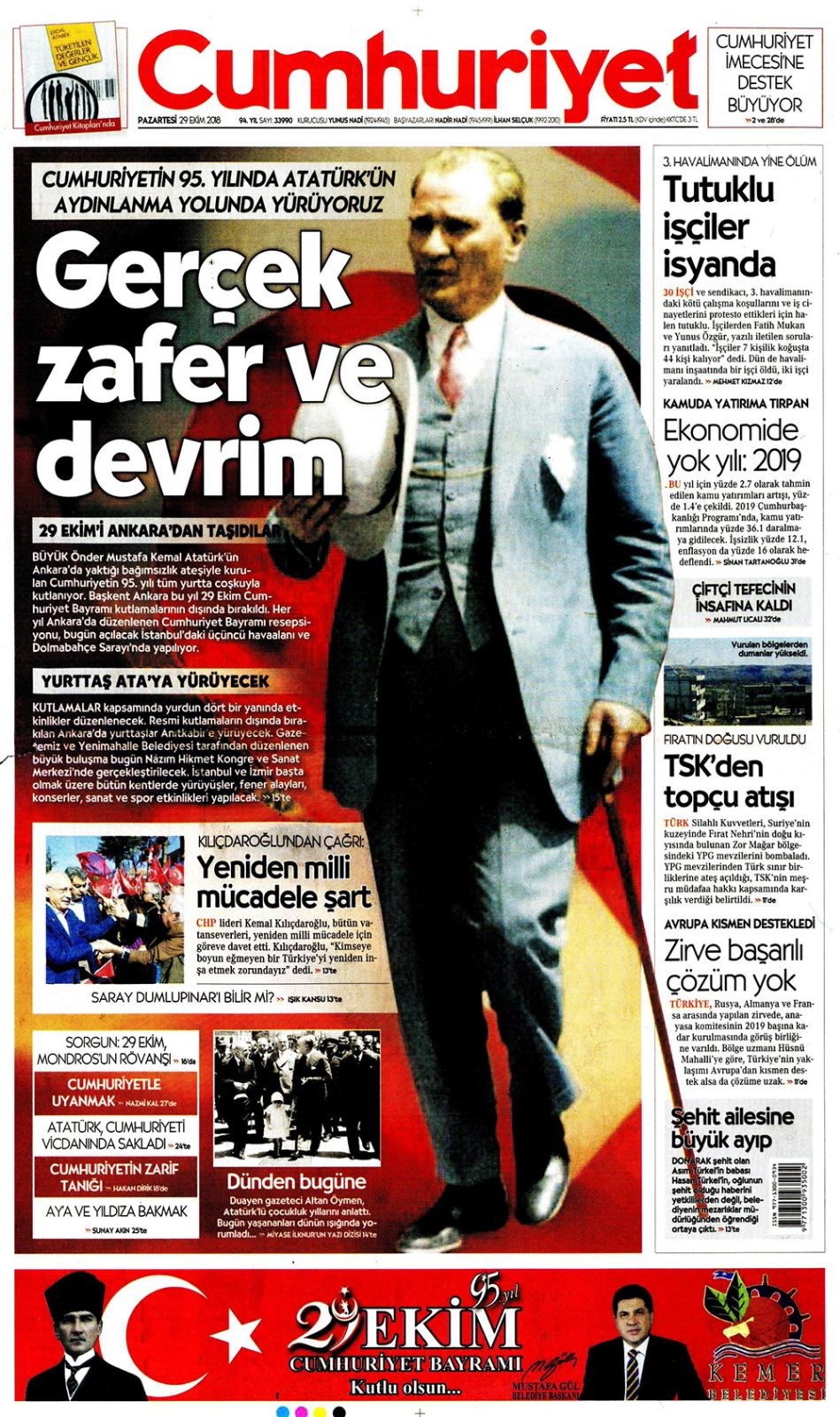 29 ekim gazete manşetleri siyah beyaz