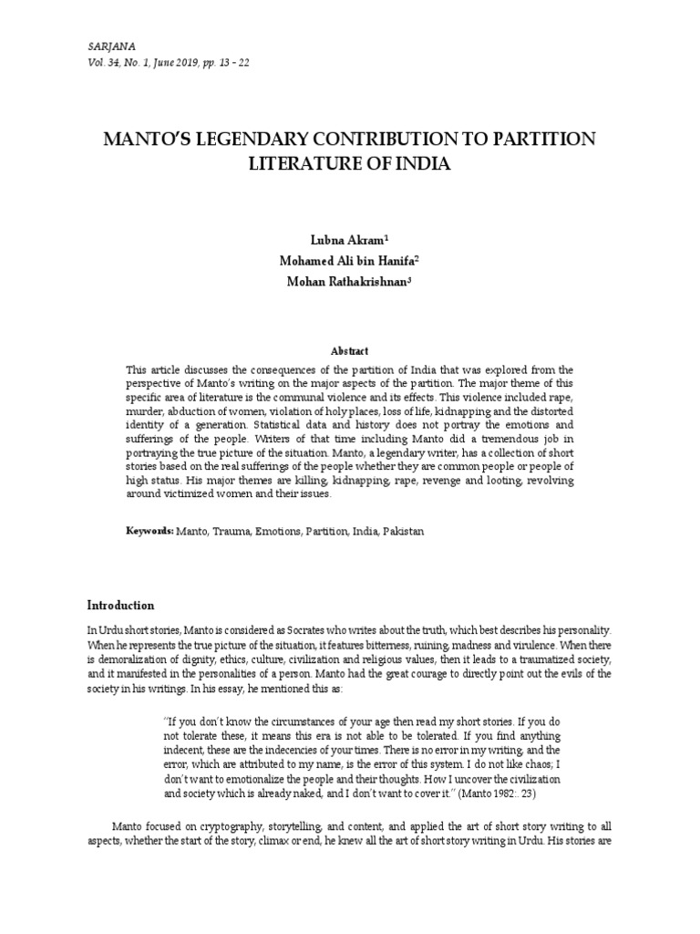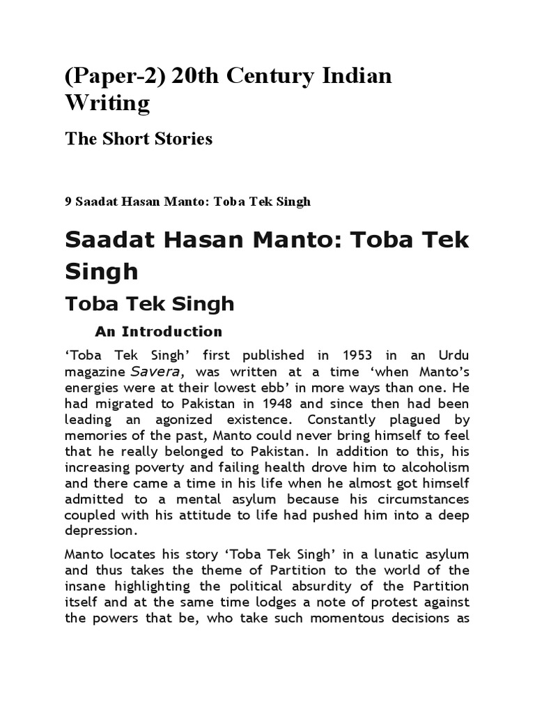 sa adat hasan manto india cannot be