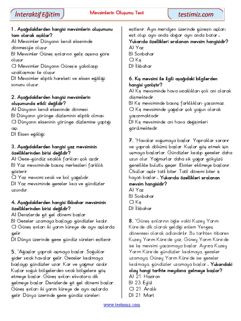 mevsim iklim hava olaylari test5 referansli ogrenciden ozel ders