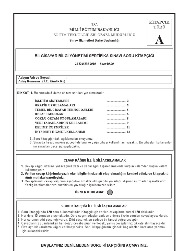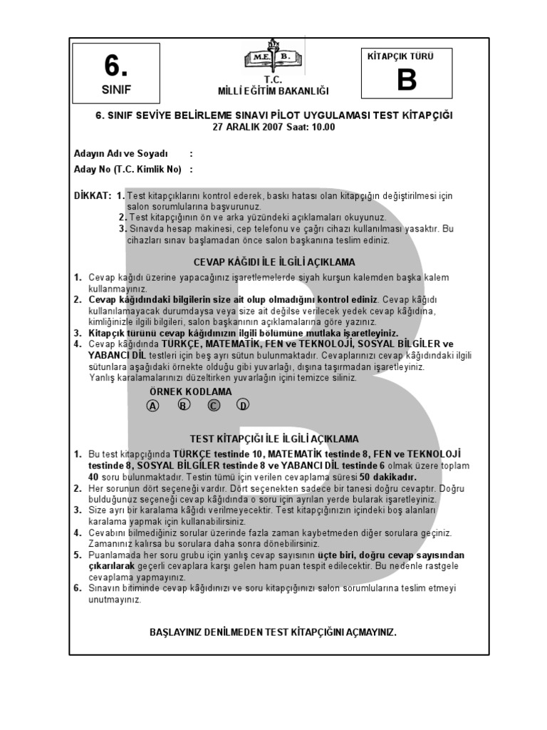 test sinavi cevap formlari