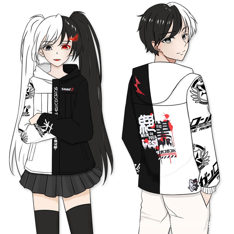 danganronpa hoodie w kırmızı beyaz siyah kollu
