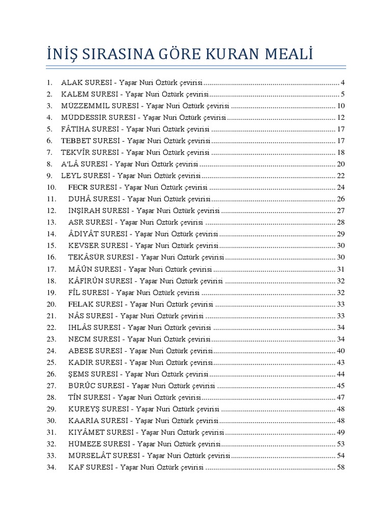 inis sirasina gore kuran meali yasar