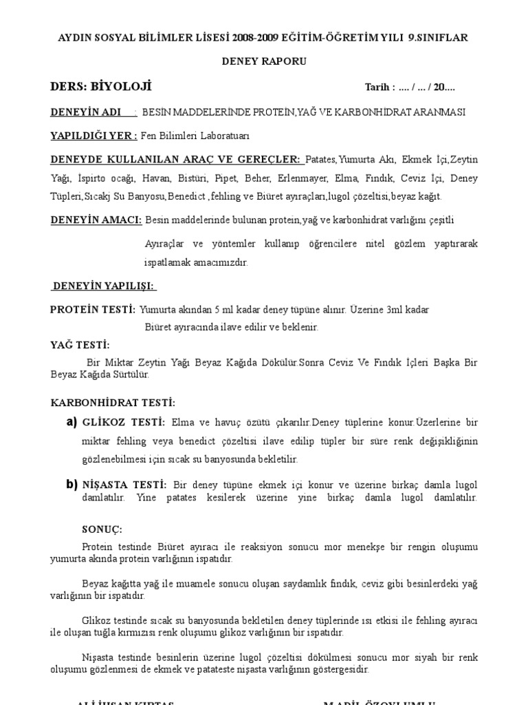 besin aranmasi deney raporu