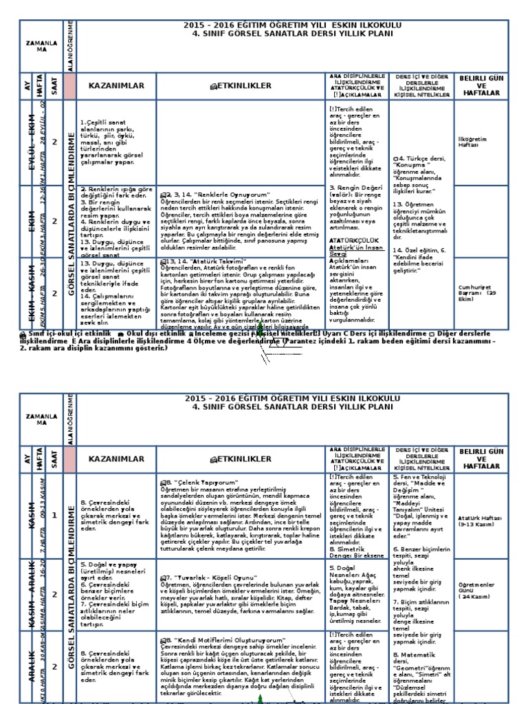yillik ders plani ted koleji