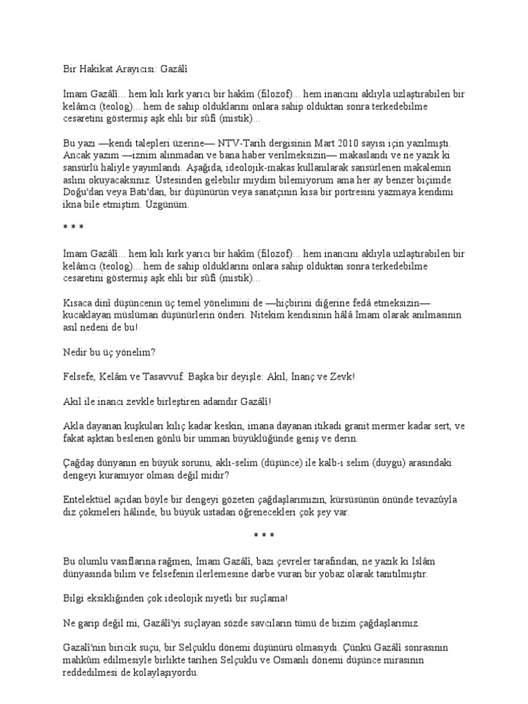 imam gazali ve hakikat arayisi