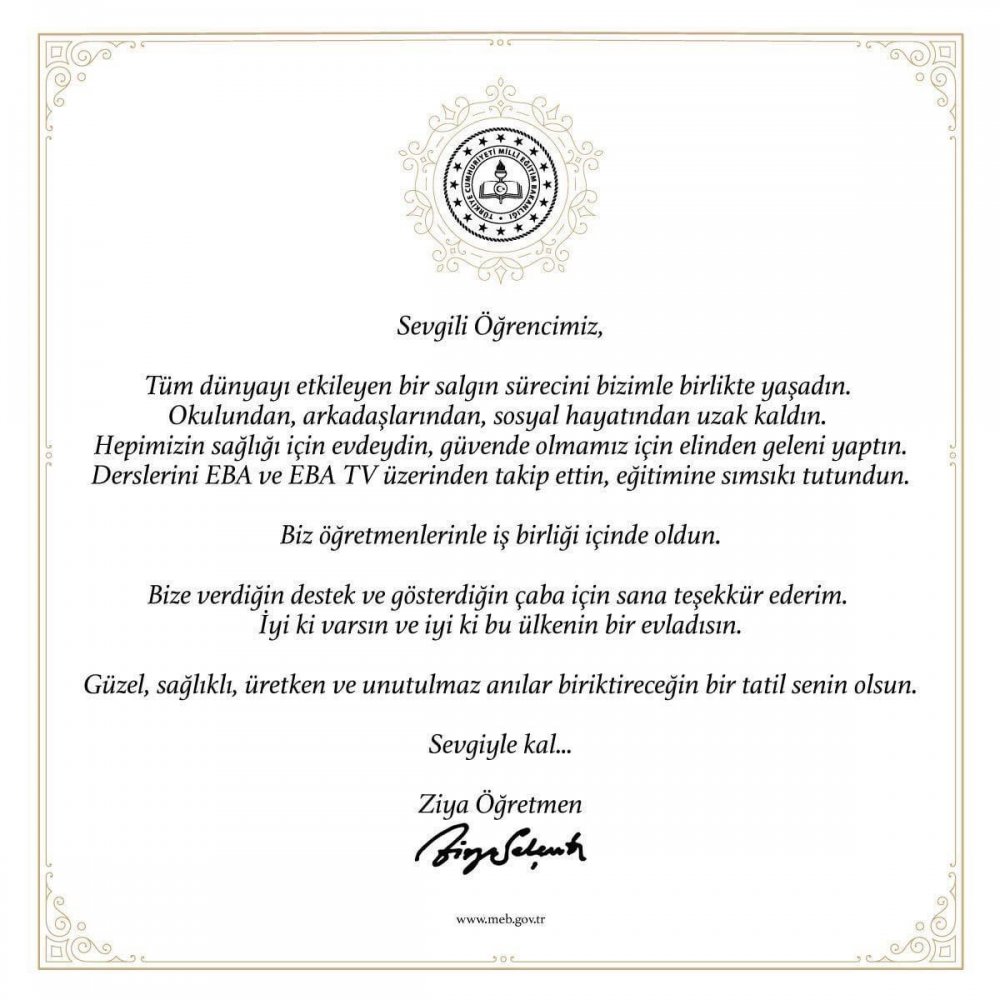 bakan ziya selcuk tan tum ogrencilere karne mesaji zumrut anaokulu