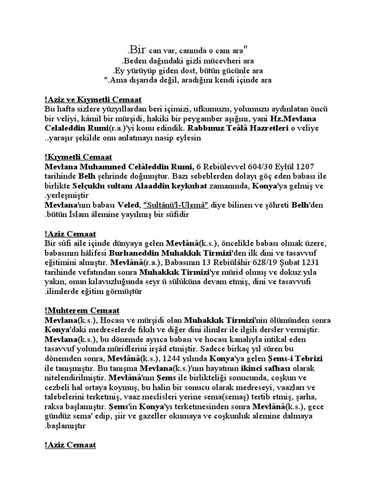 gunun soz mevlana celaleddin rumi den geldi okuyup ibret alin