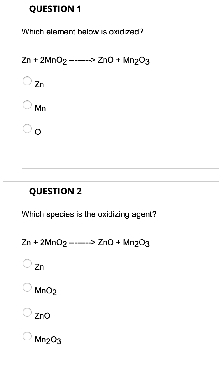 which element below is oxidized zn