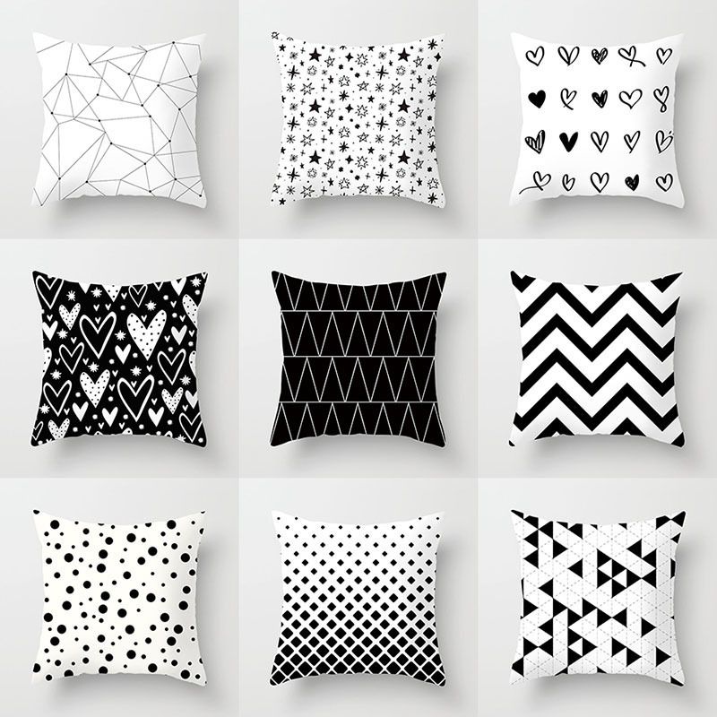 siyah beyaz dikdortgen cizgili yastik dekorluk com