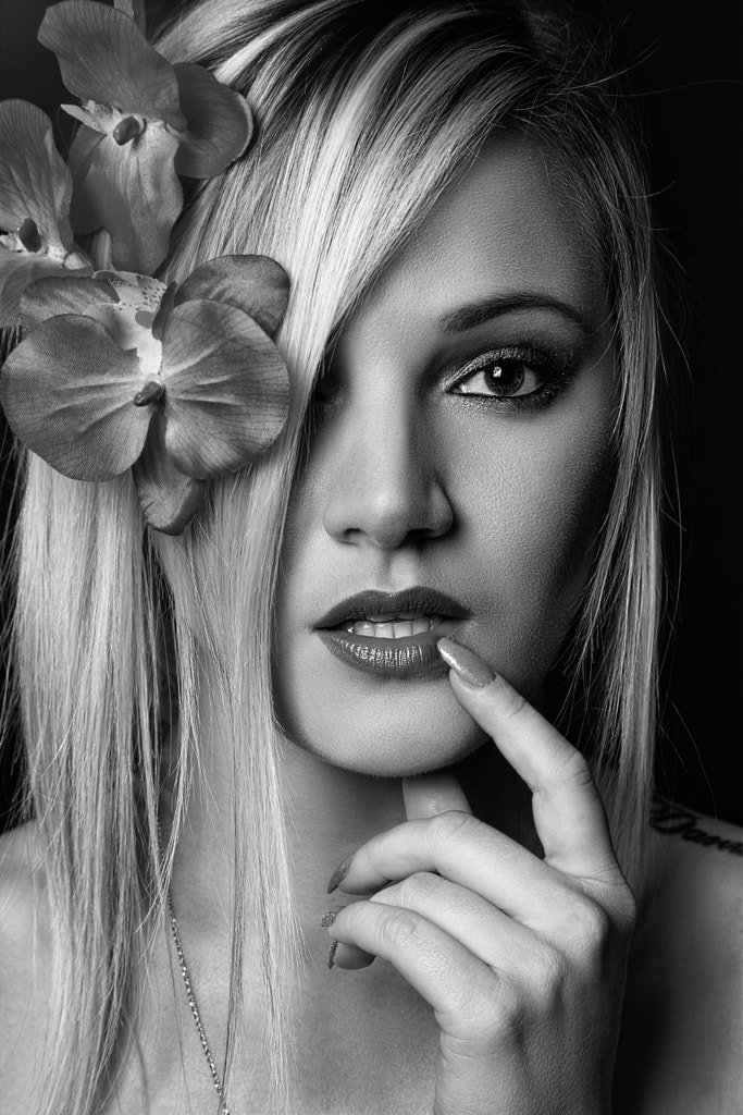fotograf siyah ve beyaz portre model tek renkli bayan sarisin omuz sac modeli gulumseme uzun sac siyah sac guzel boyun cilt guzellik seksi guzel genc kadin yuz genc kiz fotograf cekimi